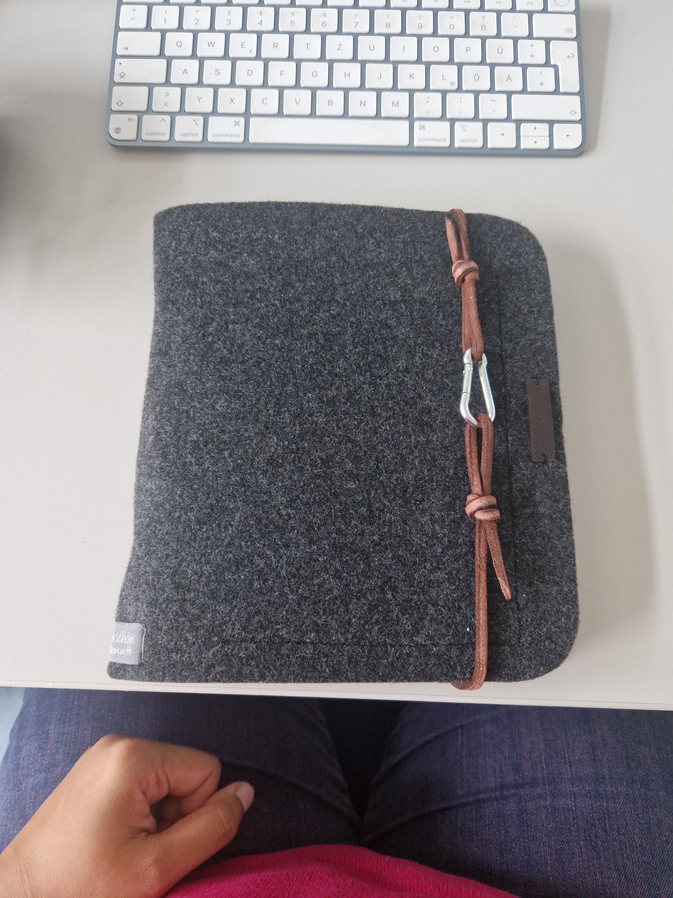 Ich habe nach etwas langlebigen als Notizbuch gesucht. Dieses Ringbuch ist sehr schön verarbeitet und hat vorne eine Tasche und eine Sifthalterung. Es passen ungefähr 250 Blätter hinein.